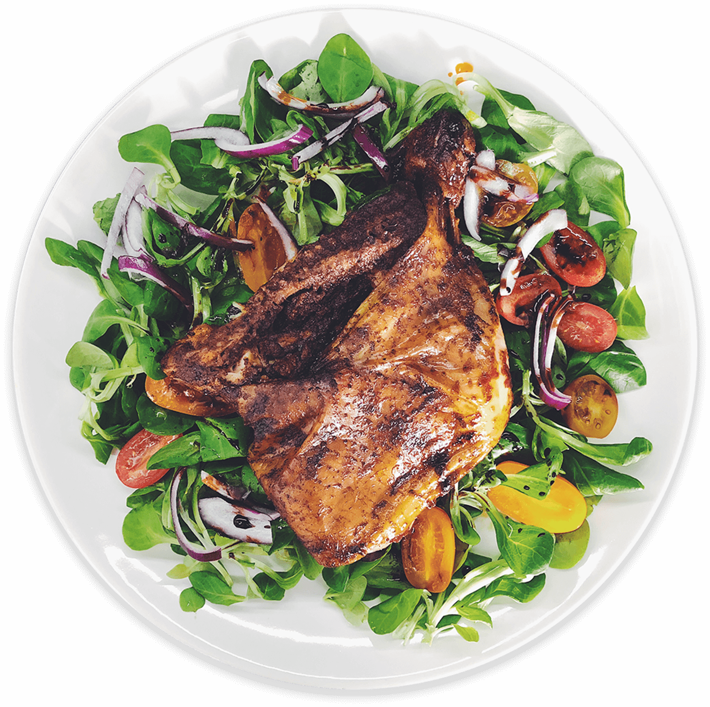Fried chicken thigh with pibil sauce, michelada mayonnaise, pickled onion, coriander and orange takin.